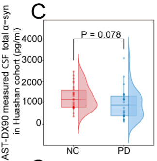 在本研究中,Dx-90平臺(tái)為揭示PD病理機(jī)制提供了重要支持?;趩畏肿用庖邫z測(cè)技術(shù)檢測(cè)腦脊液(CSF)中的總α-syn水平變化:結(jié)果顯示PD患者CSF中總α-syn水平降低,這可能反映了腦內(nèi)α-syn聚集的增加。